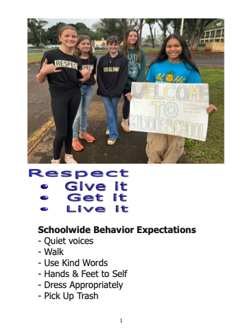 Schoolwide Behavior Expectations - Quiet voices - Walk - Use Kind Words - Hands & Feet to Self - Dress Appropriately - Pick Up Trash 1