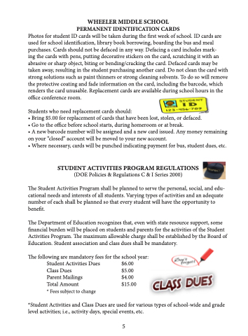 The following are mandatory fees for the school year: Student Activities Dues $6.00